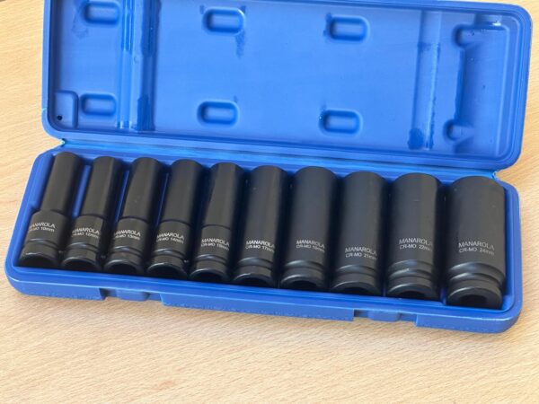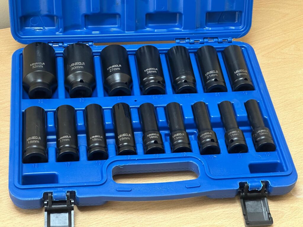 These high-quality Impact Socket Sets are designed for heavy-duty use with power tools or impact wrenches. Available in 1/2″ and 1″ drives with varying piece counts (10PC, 16PC, 25PC), they offer precision fit, corrosion resistance, and durability for workshops, garages, and DIY mechanics.