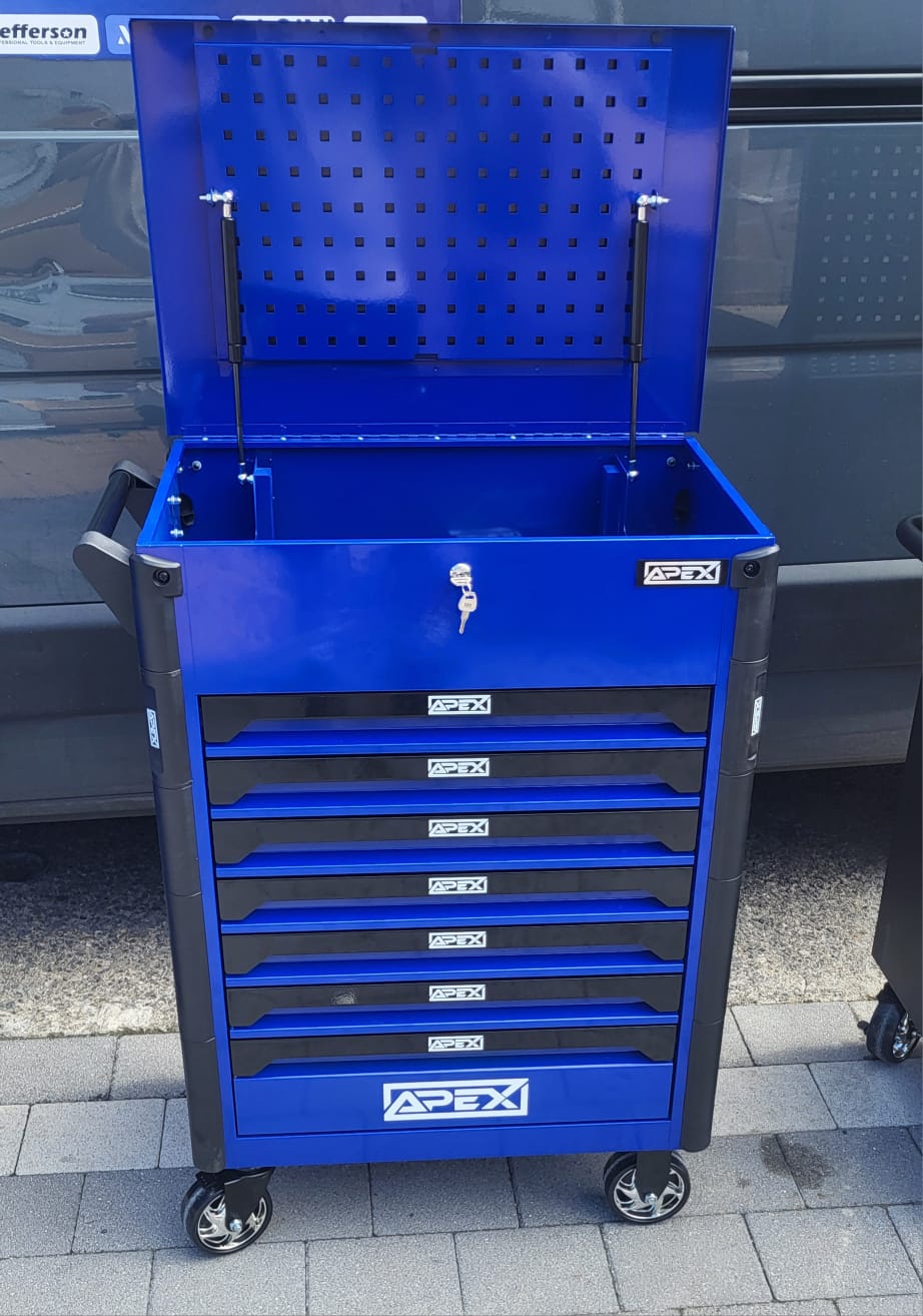 This Open Lid Tool Chest 7/6 combines durability and functionality, featuring a total of 7 drawers for efficient tool organization. Made from heavy-duty steel with smooth ball-bearing slides and a central locking system, it’s ideal for professional garages and home workshops alike.